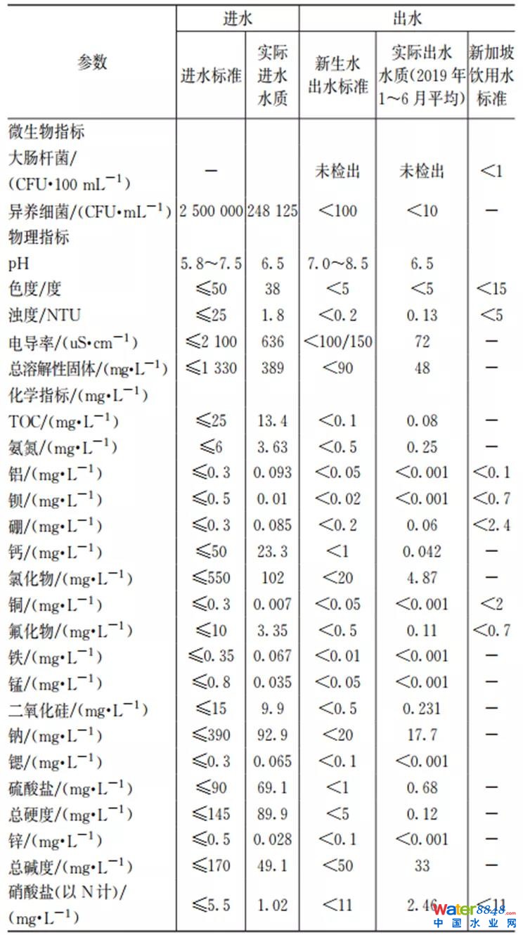 樟宜2新生水廠設(shè)計(jì)與實(shí)際進(jìn)、出水水質(zhì)及其與相關(guān)標(biāo)準(zhǔn)的對(duì)比