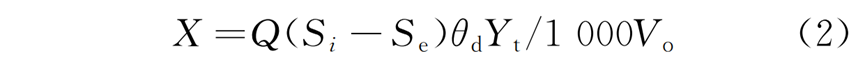 2)生物處理電耗空間的評估方法。生物池中MLSSMLVSS反映了污泥的有效性,MLSS過高,并且MLVSS/MLSS比值較低,說明池中有效污泥過少,惰性污泥會影響氧傳質效率,需要增大曝氣量來維持運行,從而增加電耗。理論污泥濃度可通過式(2)計算: