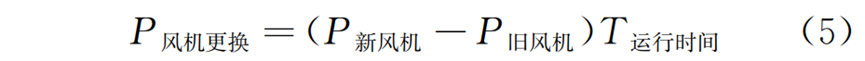 2)風機的電耗空間的評估方法。關注運行年限較長,且型號比較老舊的風機,例如多級離心、羅茨等低效風機。根據實際運行所需的水量和水質,確定符合實際要求的高效風機的型號,確定其功率。更換風機前后的電耗變化可按式(5)計算: