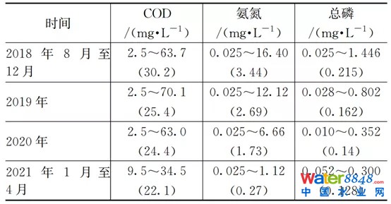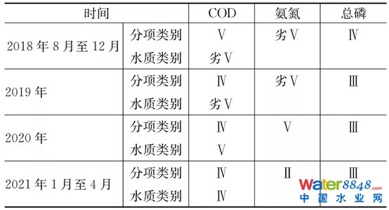 練江流域新一輪的整治工作重點(diǎn)中,加強(qiáng)污水處理產(chǎn)及配套管網(wǎng)的建設(shè)以擴(kuò)大污水收集能力及處理能力,配合河道清理、清淤及垃圾處置,流域水質(zhì)不斷改善。海門灣橋閘斷面2018年至2021年的水質(zhì)監(jiān)測數(shù)據(jù)見表1和表2。