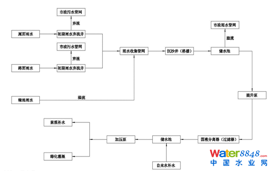圖7雨水收集回用系統(tǒng)流程圖