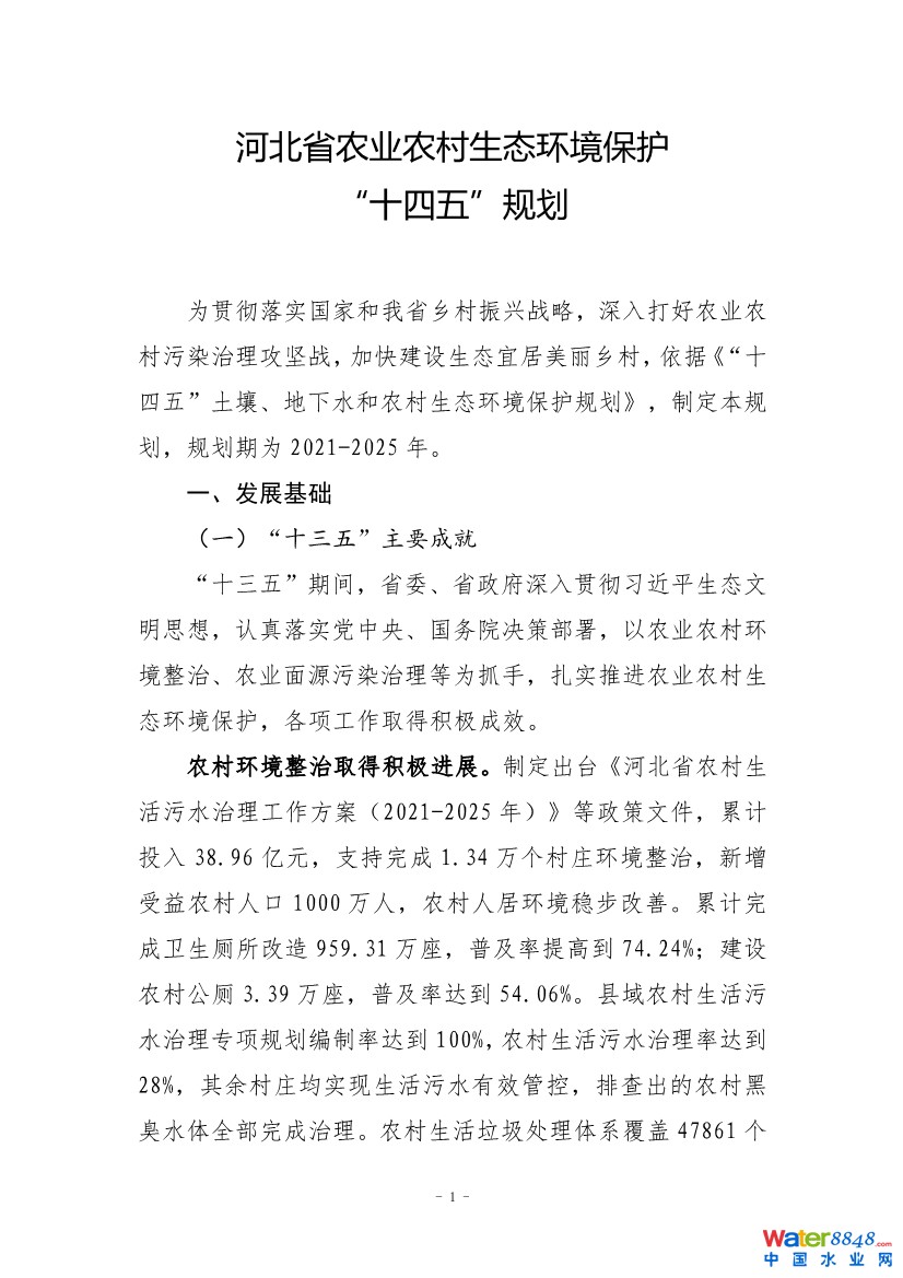 河北省農(nóng)業(yè)農(nóng)村生態(tài)環(huán)境保護“十四五”規(guī)劃