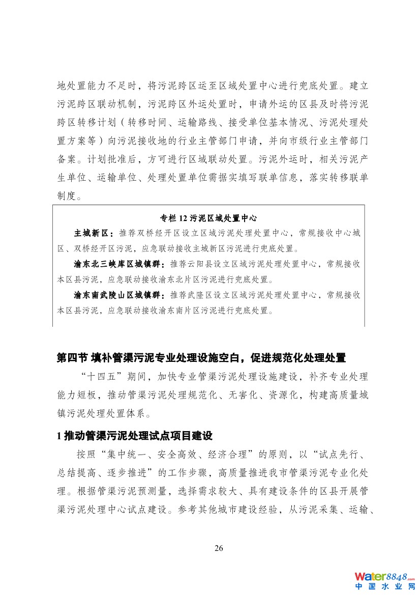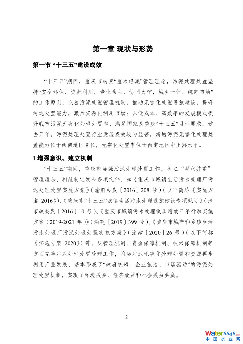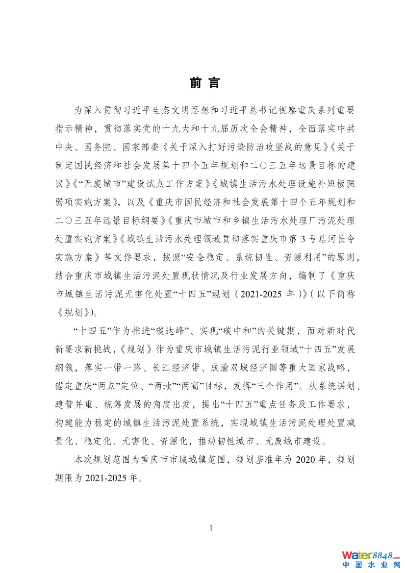 關(guān)于印發(fā)《重慶市城鎮(zhèn)生活污泥無害化處置“十四五”規(guī)劃(2021-2025年)》的通知