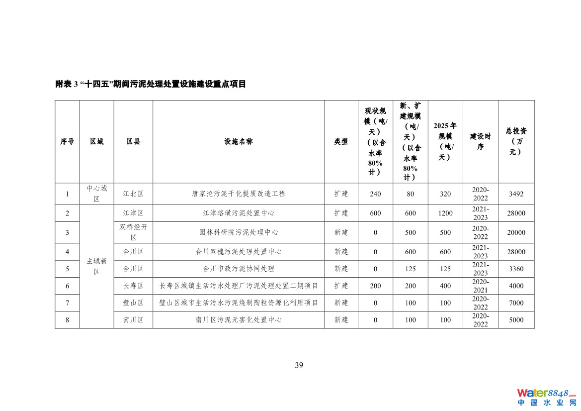 重慶市城鎮(zhèn)生活污泥無害化處置“十四五”規(guī)劃(2021-2025年)