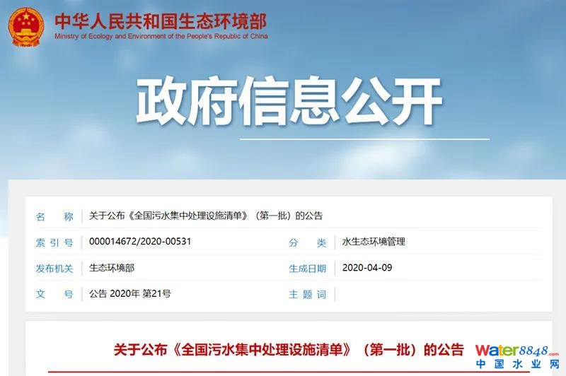 生態(tài)環(huán)境部發(fā)布2020《全國污水集中處理設施清單》