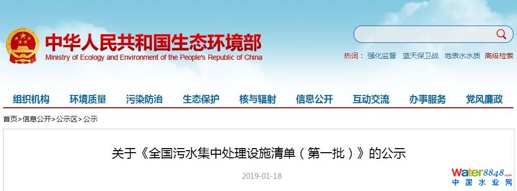 生態(tài)環(huán)境部 關(guān)于公布《全國(guó)污水集中處理設(shè)施清單》(第一批)的公告