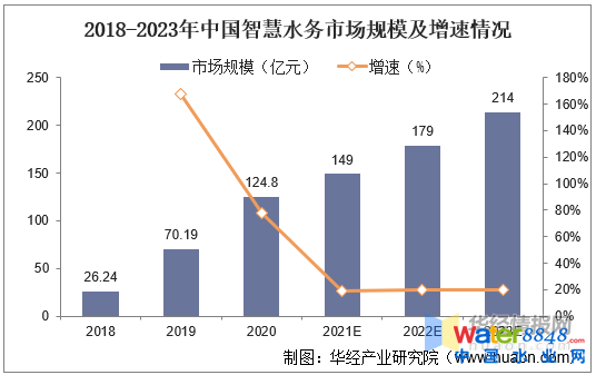 2018-2023年中國智慧水務(wù)市場規(guī)模及增速情況