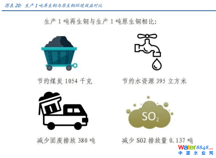 碳中和背景下,危廢資源再利用為碳減排重要途徑之一。與原生銅(開采加冶煉)的排放因子相比,再生銅有明顯的減排效應(yīng),是原生銅的32.1%。為實(shí)現(xiàn)2030年“碳達(dá)峰”、2060年“碳中和”承諾,新能源替代、節(jié)能減排、資源循環(huán)利用等將是我國(guó)的必然選擇。固廢危廢資源利用既可處置危廢又可深度資源化提煉廢銅、廢鉛等多種再生金屬及金銀等稀有金屬,兼具環(huán)保和循環(huán)經(jīng)濟(jì)減排屬性,是碳減排的重要路徑之一,同時(shí)兼具污染物減排的協(xié)同效益。目前在發(fā)達(dá)國(guó)家已經(jīng)有完善的再生銅循環(huán)利用體系,據(jù)《中國(guó)有色金屬報(bào)》2020年美國(guó)再生銅、再生鋁占銅、鋁產(chǎn)量的比例分別超過(guò)了50%和70%,美國(guó)的鉛、日本的鋁已經(jīng)實(shí)現(xiàn)100%由再生金屬原料供給。隨著無(wú)廢城市和美麗中國(guó)建設(shè)持續(xù)推進(jìn),環(huán)保執(zhí)法與督查力度進(jìn)一步加大,鋼鐵、有色金屬等行業(yè)減少原生礦產(chǎn)資源的使用量,不斷提高廢鋼鐵、廢有色金屬等環(huán)保原料的使用比例。