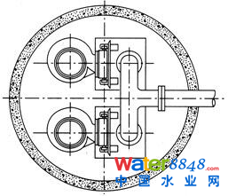 2、葉輪檔轉(zhuǎn)子軸中心打孔,其下面裝有T字?jǐn)噭蝾^,泵腔內(nèi)壓力水通過(guò)軸中心孔、攪勻頭噴向污水池四周,如此結(jié)構(gòu)會(huì)有污水雜質(zhì)堵住水流孔無(wú)攪勻效果和攪勻頭旋轉(zhuǎn)時(shí)被纖維繩狀物纏死而燒電機(jī)的弊端。