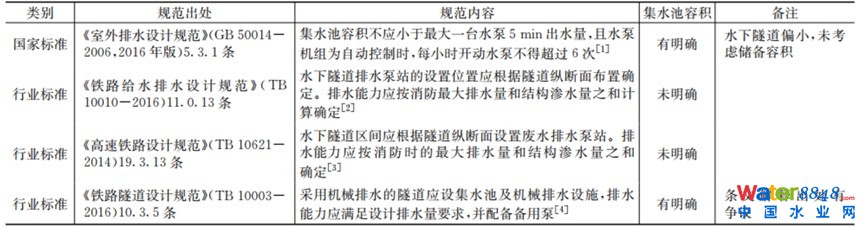 鐵路行業(yè)標準《鐵路給水排水設(shè)計規(guī)范》(TB 10010-2016)、《高速鐵路設(shè)計規(guī)范》(TB 10621-2014)均未對泵站集水池容積有明確。