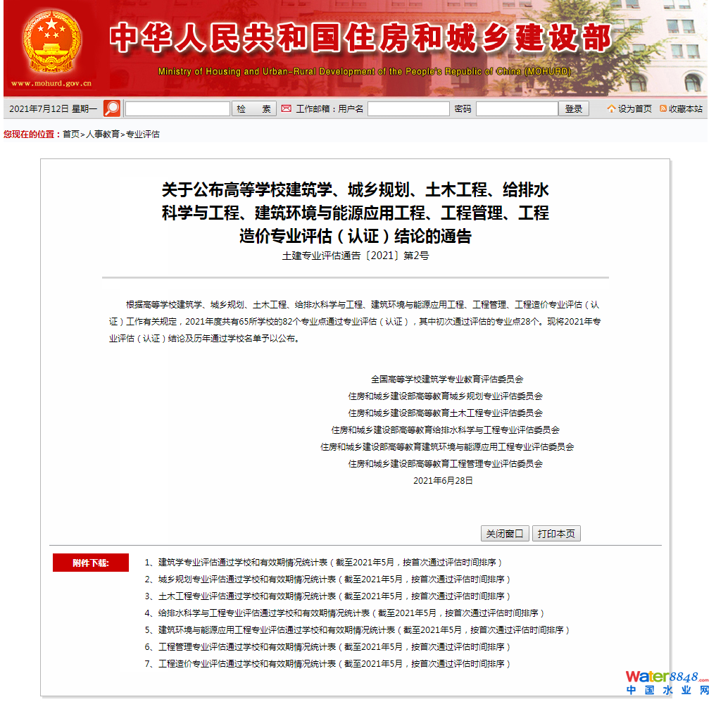 2021年給排水科學(xué)與工程專業(yè)評(píng)估通過學(xué)校名單公布!