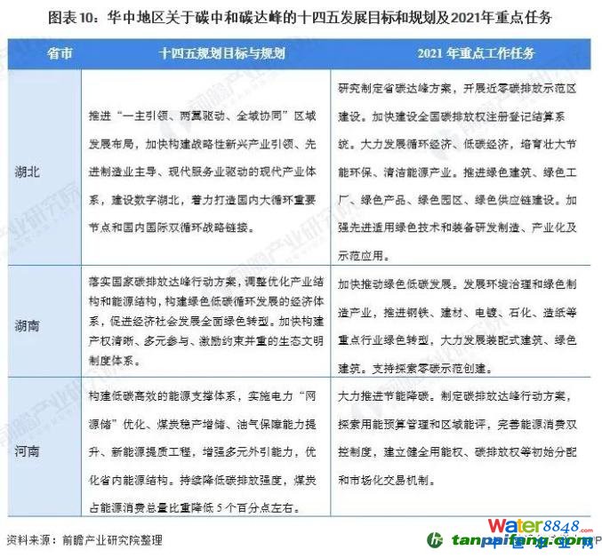 結(jié)合區(qū)域發(fā)展特性,東北地區(qū)各省十四五規(guī)劃目標(biāo)和2021年重點(diǎn)工作任務(wù)中主要以發(fā)展能源替代和建設(shè)綠色工業(yè)園區(qū)為主。五、華中地區(qū) 夲呅內(nèi)傛萊源。骇鎲┨*排*放^鮫*易-網(wǎng) τā ńpāīfāńɡ.cōm