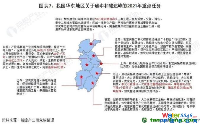 華北地區(qū)歷來是我國(guó)主要煤炭生產(chǎn)地區(qū),2020年全年我國(guó)煤炭產(chǎn)量累計(jì)為38.44億噸,其中山西和內(nèi)蒙古為煤炭產(chǎn)量最多的兩個(gè)省份,分別占全國(guó)的27.66%和26.04%,合計(jì)占比超過50%。隨著碳中和和碳達(dá)峰任務(wù)目標(biāo)的提出,煤炭又是碳排放的主要能源來源,因此華北地區(qū)成為我國(guó)傳統(tǒng)能源產(chǎn)能結(jié)構(gòu)調(diào)整的頭號(hào)陣地。華北地區(qū)在碳中和碳達(dá)峰背景下十四發(fā)展的主要目標(biāo)和規(guī)劃和2021年重點(diǎn)任務(wù)是為實(shí)現(xiàn)碳達(dá)峰和碳中和加快傳統(tǒng)能源能源結(jié)構(gòu)的的改革,推進(jìn)煤炭安全高效開采和清潔高效利用。三、華東地區(qū) 本/文-內(nèi)/容/來/自:中-國(guó)-碳-排-放-網(wǎng)-tan pai fang . com