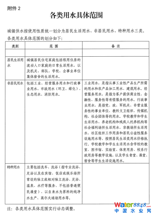 各類用水具體范圍 圖表來源:《城鎮(zhèn)供水價格管理辦法》