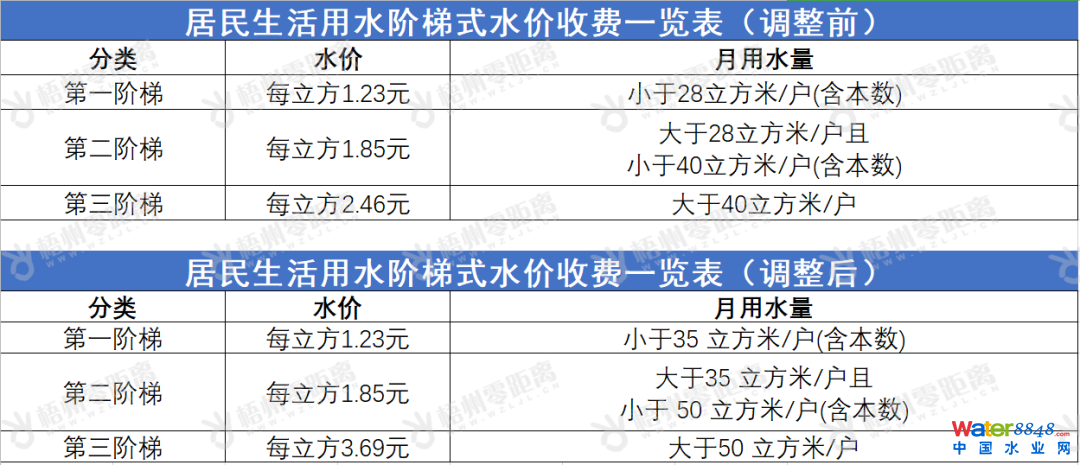 據(jù)了解,此次調(diào)整“一戶一表”的居民用戶階梯用水量將分別增加7立方米/月、10立方米/月。調(diào)整后,第一階梯水量為月用水量小于35立方米/戶(含本數(shù));第二階梯水量為月用水量大于35立方米/戶且小于50立方米/戶(含本數(shù));第三階梯水量為月用水量大于50立方米/戶。其中,家庭人口超過5人的居民用戶可憑戶口簿、居住證等向供水企業(yè)申請,經(jīng)供水企業(yè)核實(shí)后,每增加一人,第一、第二檔月用水量分別增加7立方米/人、10立方米/人。而對未實(shí)行抄表到戶的合表戶居民、執(zhí)行居民生活用水價格的非居民用戶,供水價格則按第一階梯價格的1.05倍執(zhí)行。另外,此次調(diào)整還將把特種用水納入超定額(計(jì)劃)累進(jìn)加價制度實(shí)施范圍內(nèi)。