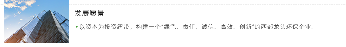 重慶環(huán)投集團將始終秉承“環(huán)境創(chuàng)造價值、服務(wù)造福社會”的核心理念,圍繞打造全市“生態(tài)環(huán)保投融資平臺”和“生態(tài)環(huán)境綜合服務(wù)商”的發(fā)展戰(zhàn)略,持續(xù)利用政策、資源、技術(shù)及資金優(yōu)勢,推動生態(tài)環(huán)保領(lǐng)域基礎(chǔ)設(shè)施建設(shè),整合生態(tài)環(huán)保產(chǎn)業(yè)各要素,深耕布局全產(chǎn)業(yè)鏈,成為一家現(xiàn)代化的生態(tài)環(huán)保全產(chǎn)業(yè)鏈實體企業(yè)和重慶環(huán)保產(chǎn)業(yè)的龍頭企業(yè)。同時,立足上游責任,勇挑上游擔當,力求將自身打造成為輻射長江上游,影響力覆蓋全國的生態(tài)環(huán)保骨干企業(yè),積極發(fā)揮產(chǎn)業(yè)引領(lǐng)和示范作用,實現(xiàn)環(huán)境效益、社會效益及經(jīng)濟效益的有機統(tǒng)一,為建設(shè)生態(tài)文明的“美麗中國”做出積極貢獻。