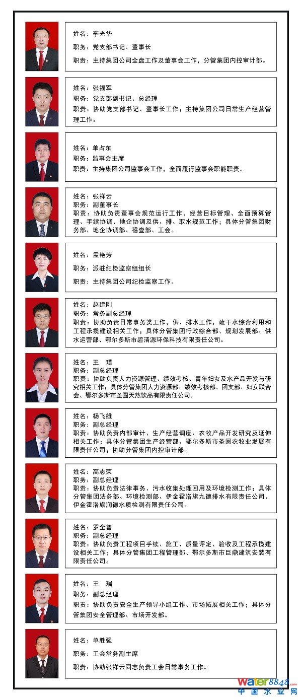 鄂爾多斯市圣圓水務(wù)集團有限責任公司:黨支部書記、董事長李光華