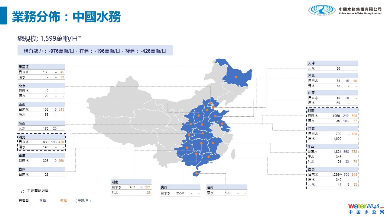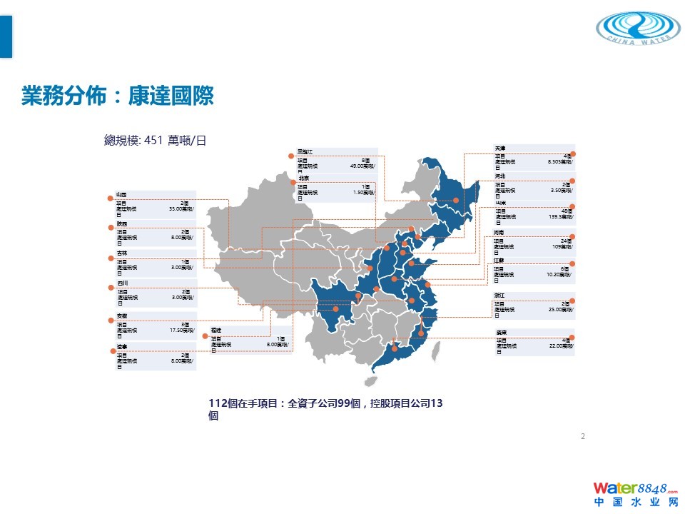 現(xiàn)時(shí),集團(tuán)在中國(guó)大陸的業(yè)務(wù)已超過(guò)110個(gè)縣市。綜合水處理能力超過(guò)每天2000萬(wàn)噸。