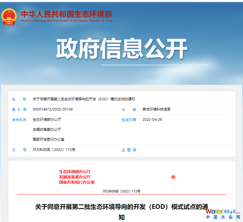 生態(tài)環(huán)境部、發(fā)改委兩部委發(fā)布EOD模式試點(diǎn),持續(xù)推進(jìn)環(huán)境治理模式創(chuàng)新