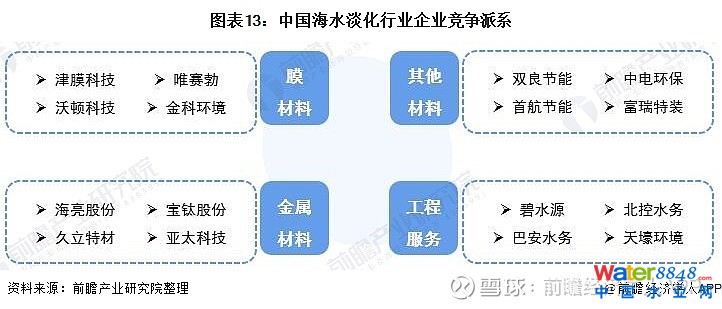 我國(guó)海水淡化行業(yè)競(jìng)爭(zhēng)大體上可以按所屬產(chǎn)業(yè)鏈環(huán)節(jié)分為四個(gè)派系。海水淡化設(shè)備制造可分為膜材料金屬材料和其他材料三個(gè)派系,海水淡化工程服務(wù)自成一個(gè)派系。其中膜材料代表企業(yè)有津膜科技、沃頓科技、金科環(huán)境等;金屬材料代表企業(yè)有海亮股份、寶鈦股份、久立特材、亞太科技等;其他材料代表企業(yè)有雙良節(jié)能首航節(jié)能、中電環(huán)保、富瑞特裝等;工程服務(wù)代表企業(yè)有碧水源、巴安水務(wù)、北控水務(wù)、天壕環(huán)境等