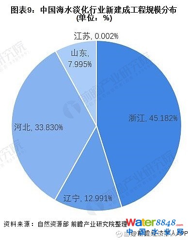 2、海水淡化工程區(qū)域分布:集中在沿海缺水省市