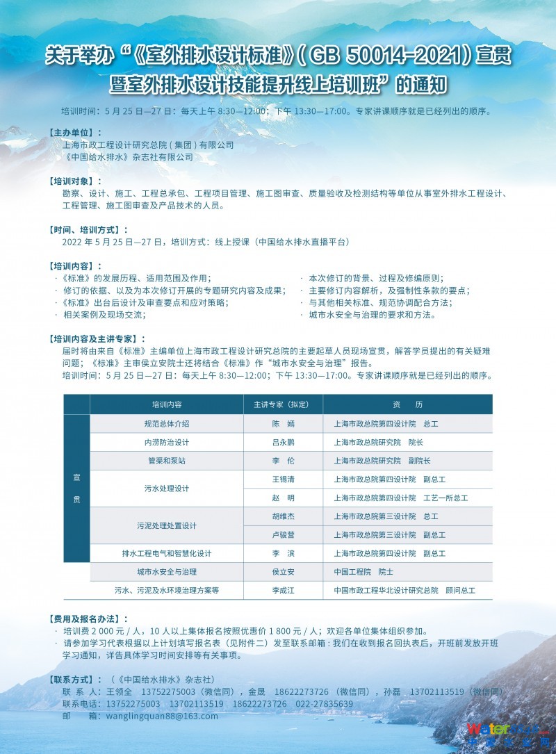 2022年5月25日—27日,培訓(xùn)方式:線上授課(中國給水排水直播平臺(tái))