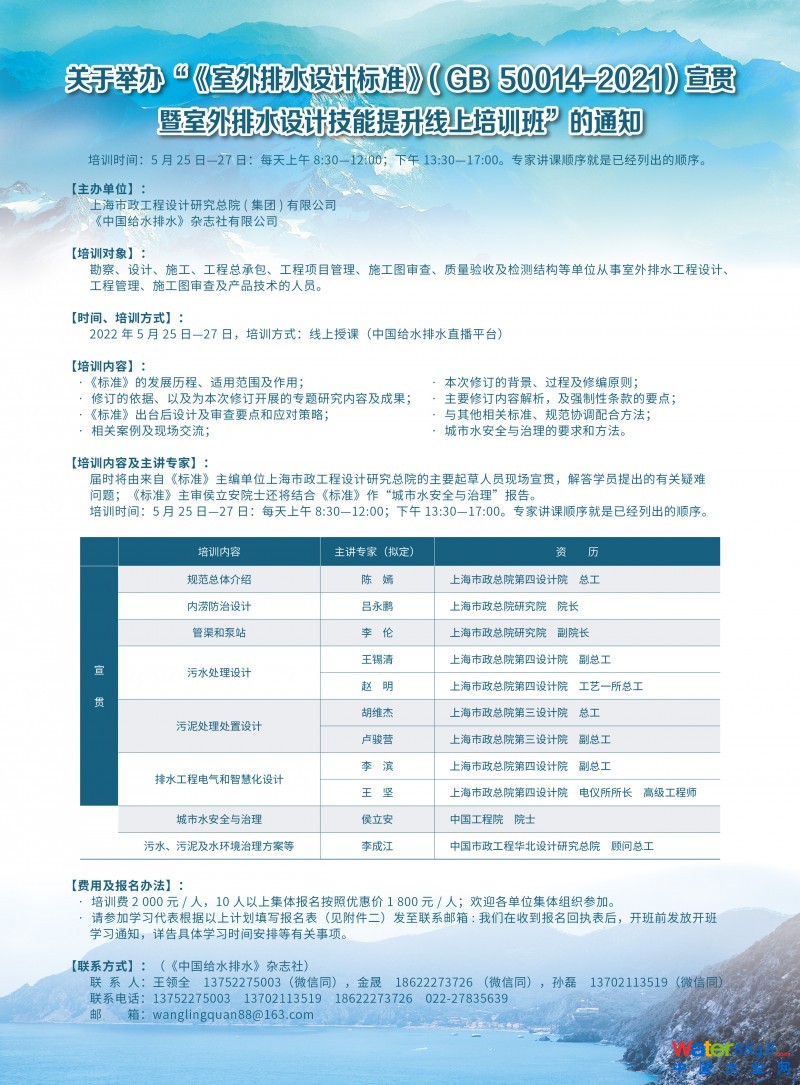 中國水協(xié)團體標準《城市供水企業(yè)突發(fā)事件應(yīng)急預(yù)案編制技術(shù)規(guī)程》宣貫會通知 中國城鎮(zhèn)供水排水協(xié)會 直播:中國水協(xié)城鎮(zhèn)供水排水協(xié)會城鎮(zhèn)水環(huán)境專業(yè)委員會2024年年會 直播時間:2024年11月1日(周五) 08:30—18:00 2024-11-01 08:30:00 開始