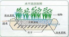 污水從人工濕地的一端進(jìn)入,在人工濕地床表面下以近水平流方式流動(dòng),最后流向出口,使污水得以凈化的人工濕地形式。