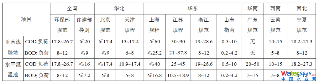《人工濕地污水處理工程技術(shù)規(guī)范》HJ 2005—2010(以下簡稱環(huán)保部規(guī)范)
