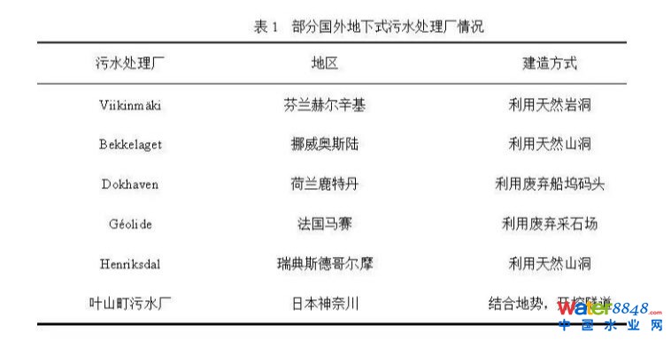 在人口密度更高,城市用地更為緊張,社會(huì)經(jīng)濟(jì)更加發(fā)達(dá)的一些歐美、日本等國家(圖5),地下式污水處理廠并非遍地開花,幾乎是鳳毛麟角。此外,國外少有的一些地下式污水處理廠案例(表1)中,其建設(shè)選址、緣由也非盲目跟風(fēng),主要是充分利用天然山洞、廢棄地下建筑等地形順勢而為,因此而大大減少了建設(shè)所需的工程量?梢姡叵挛鬯幚韽S的建設(shè)應(yīng)因地制宜,不應(yīng)盲目跟風(fēng)。