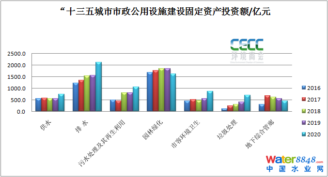 “十三五”城市部分市政公用設(shè)施投資情況: