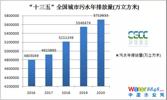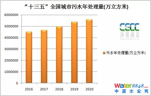截至2020年,城市及縣城污水處理廠共4326座,較“十二五”末新增783座,其中,城市污水處理廠2618座,五年累計新增674座。污水廠處理能力19267萬立方米/日,較“十二五”末增長37.2%。