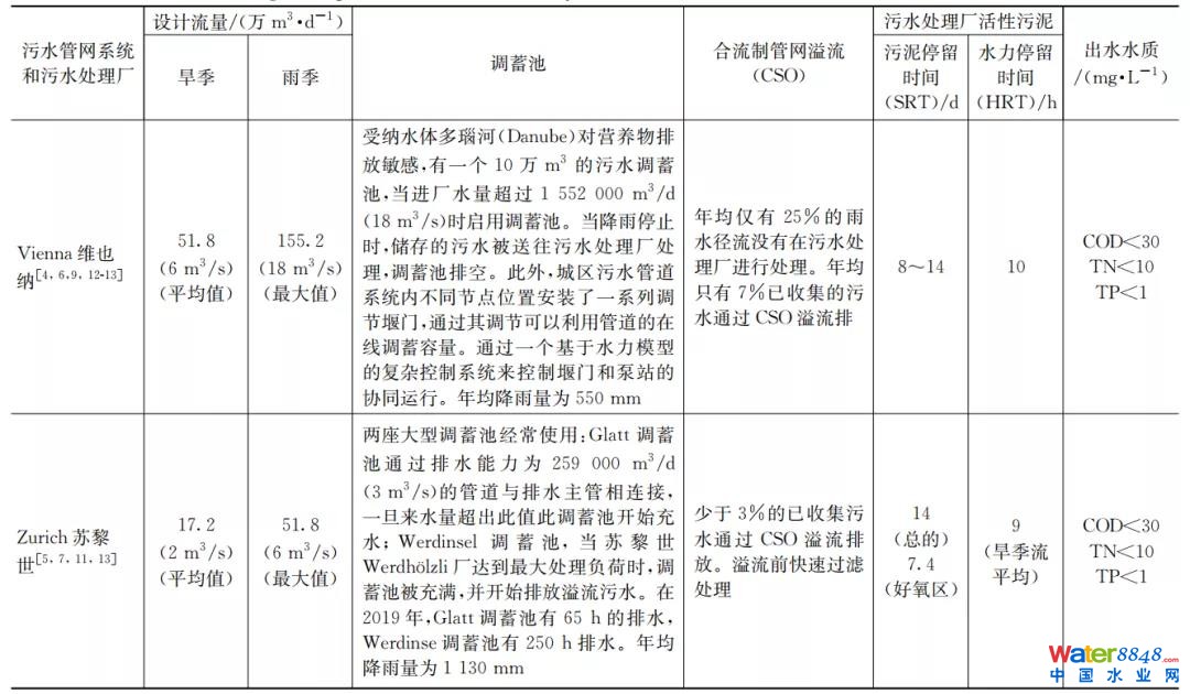 表1 維也納和蘇黎世污水管網(wǎng)系統(tǒng)和VMWWTP和Werdhölzli污水處理廠的主要設計和運行數(shù)據(jù)