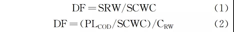 式中 SRW 為人日均管網(wǎng)中混合污水量;SCWC為人日均綜合用水量;PLCOD為人日均COD排放量;CRW 為管網(wǎng)中污水COD濃度。由于經(jīng)常缺乏SRW數(shù)據(jù),實際上式(2)被更多地用于計算稀釋倍數(shù)。