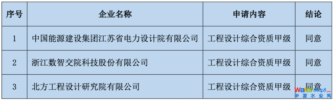 3家獲通過工程設(shè)計綜合甲級資質(zhì)的單位名單