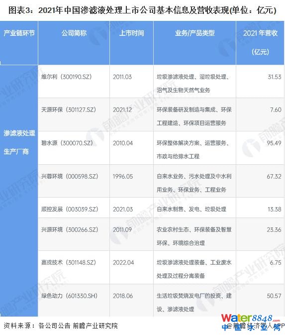 1、滲濾液處理產(chǎn)業(yè)上市公司匯總