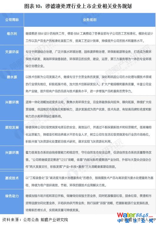 5、滲濾液處理行業(yè)上市公司業(yè)務(wù)規(guī)劃