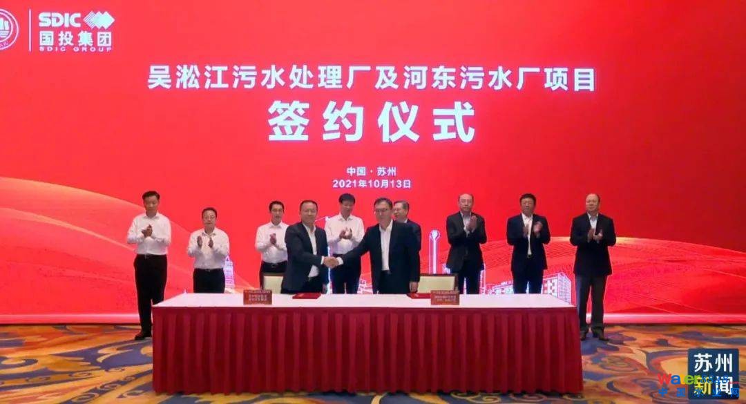 國投環(huán)境科技發(fā)展(蘇州)有限公司揭牌落戶吳中區(qū),吳淞江污水處理廠及河?xùn)|污水廠項目進行了簽約。