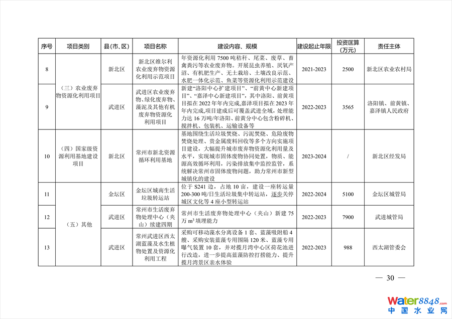 推進(jìn)環(huán)太湖城鄉(xiāng)有機(jī)廢棄物處理利用示范建設(shè),對生活垃圾、餐廚垃圾(廚余垃圾)、綠化廢棄物、藍(lán)藻藻泥等城市廢棄物進(jìn)行分類利用和集中處置。因地制宜做好秸稈綜合利用工作,提升秸稈綜合利用能力。完成溧陽市綠化有機(jī)廢棄物資源化利用與建筑垃圾轉(zhuǎn)運(yùn)綜合體、武進(jìn)區(qū)農(nóng)業(yè)廢棄物、綠化廢棄物、藍(lán)藻藻泥及其他有機(jī)廢棄物資源化利用項(xiàng)目、天寧農(nóng)業(yè)廢棄物綜合利用等建設(shè)。到2023年,武進(jìn)區(qū)全面建成“收、運(yùn)、處、用”一體化運(yùn)作模式的有機(jī)廢棄物收集處置示范區(qū)建設(shè)試點(diǎn)。到2025年,全市綠化廢棄物綜合利用率達(dá)到95%,藍(lán)藻綜合利用率達(dá)到90%,秸桿綜合利用率達(dá)到95%。
