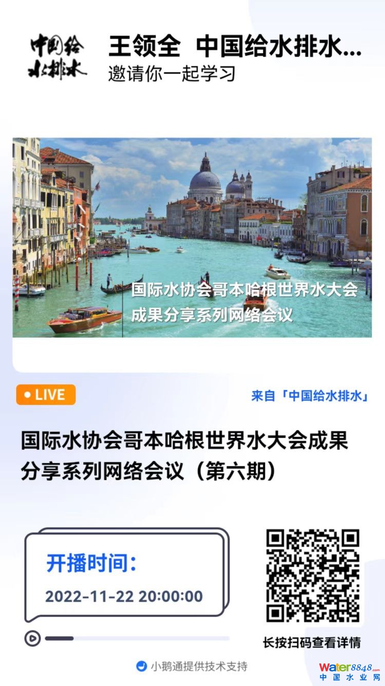 國(guó)際水協(xié)會(huì)哥本哈根世界水大會(huì)成果分享系列網(wǎng)絡(luò)會(huì)議(第六期) 直播時(shí)間:2022年11月22日 20:00—22:00