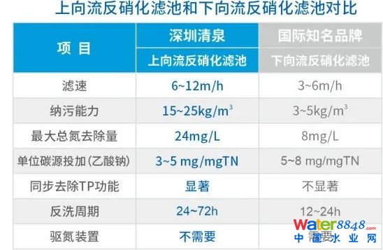 (1)具有脫氮效率高,是國(guó)際知名下向流反硝化濾池的3倍以上;同時(shí)還具有顯著除磷功能,可去除0.6 mg/L的TP。