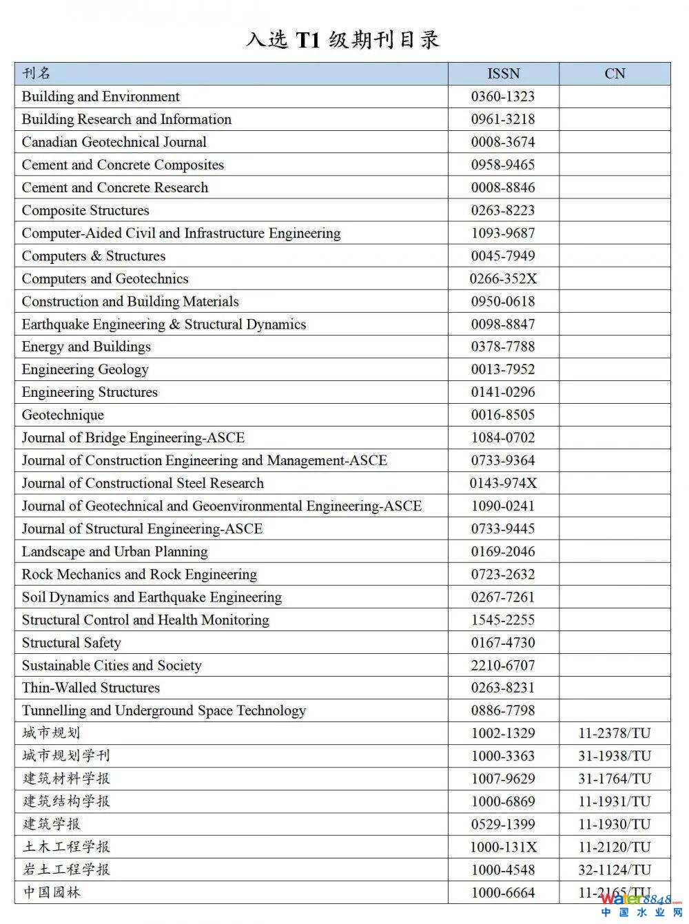 2020.09月,中國(guó)修建學(xué)會(huì),該目錄中共有111種期刊入選,并將入選期刊分為T(mén)1級(jí)、T2級(jí)和T3級(jí)三個(gè)級(jí)別,其中入選T1級(jí)期刊36種,入選T2級(jí)期刊35種,入選T3級(jí)期刊40種。