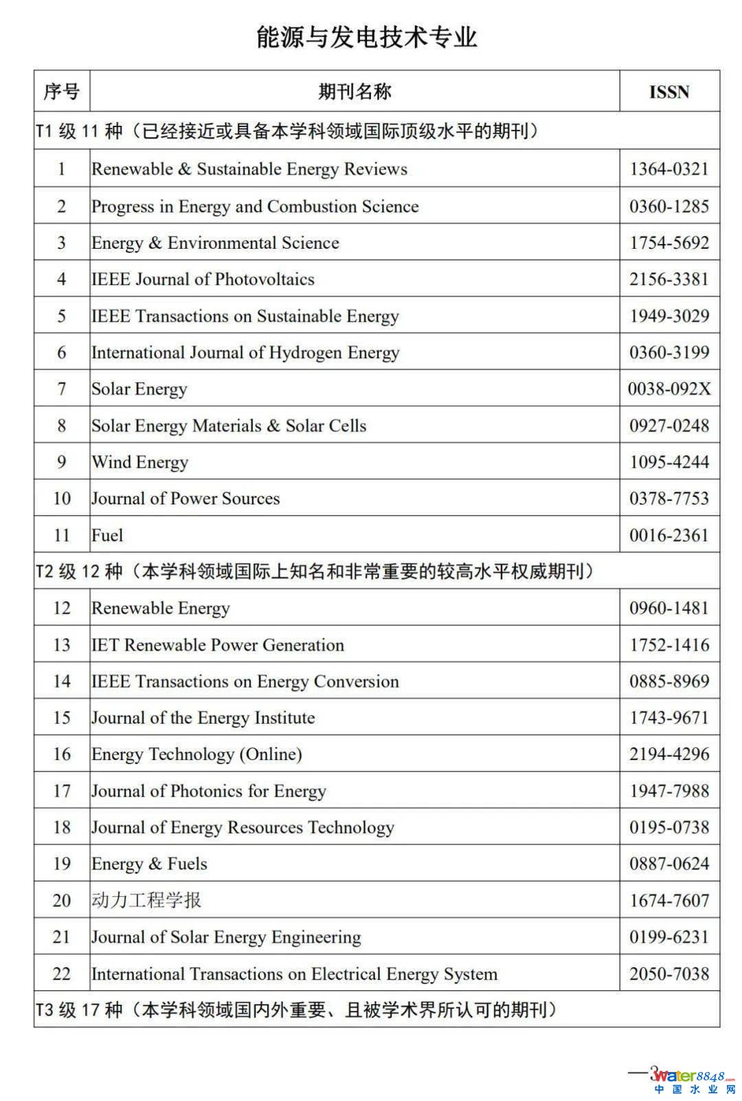 能源電力范疇高質(zhì)量科技期刊分級(jí)目錄(121種)
