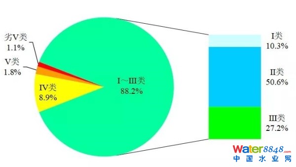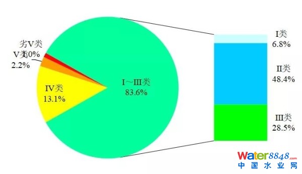 圖2  1-11月全國地表水水質(zhì)類別比例