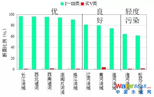 1-11月,長江、黃河、珠江、松花江、淮河、海河、遼河等七大流域及西北諸河、西南諸河和浙閩片河流水質(zhì)優(yōu)良(Ⅰ~Ⅲ類)斷面比例為85.8%,同比上升1.8個百分點(diǎn);劣Ⅴ類斷面比例為0.8%,同比下降0.9個百分點(diǎn)。主要污染指標(biāo)為化學(xué)需氧量、高錳酸鹽指數(shù)和總磷。其中,長江流域、西北和西南諸河、浙閩片河流和珠江流域水質(zhì)為優(yōu);遼河、黃河和淮河流域水質(zhì)良好;松花江和海河流域?yàn)檩p度污染。