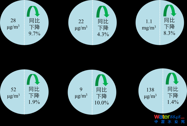 1-11月,全國339個地級及以上城市平均優(yōu)良天數(shù)比例為87.6%,同比下降0.3個百分點(diǎn);PM2.5平均濃度為28微克/立方米,同比下降9.7%;PM10平均濃度為52微克/立方米,同比下降1.9%;O3平均濃度為138微克/立方米,同比下降1.4%;SO2平均濃度為9微克/立方米,同比下降10.0%;NO2平均濃度為22微克/立方米,同比下降4.3%;CO平均濃度為1.1毫克/立方米,同比下降8.3%。