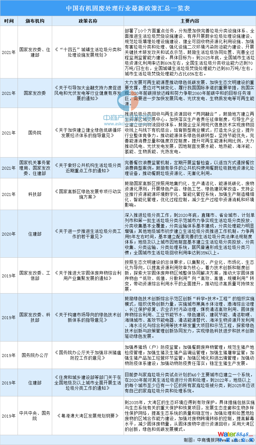 2022年中國有機(jī)固廢處理行業(yè)最新政策匯總一覽(表)