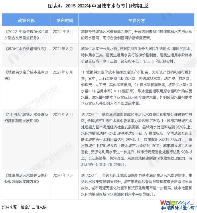 2022年中國城市水務(wù)行業(yè)市場現(xiàn)狀及發(fā)展前景分析 城市污水處理率達(dá)97.89% 水務(wù)行業(yè)主要上市公司:北控水務(wù) ( 00371.HK ) ;中國水務(wù) ( 00855.HK ) ; 首創(chuàng)環(huán)保 ( 600