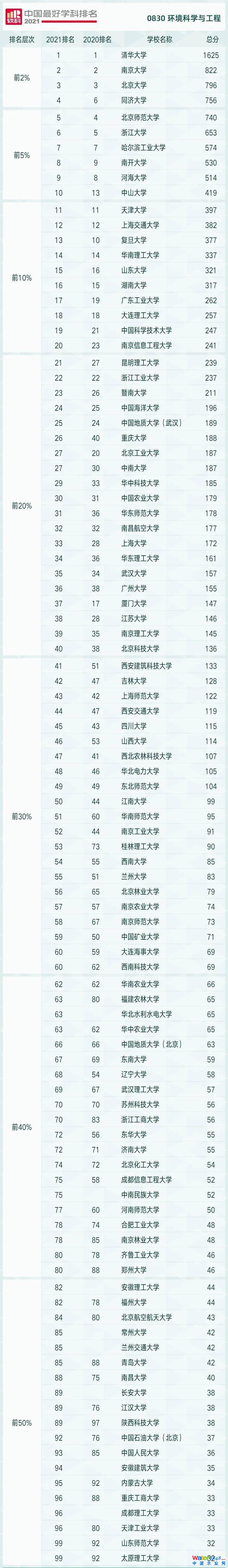 2021軟科中國最好學(xué)科排名——環(huán)境科學(xué)與工程