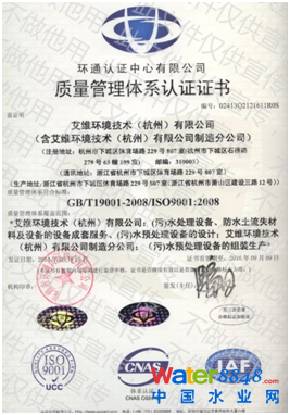 嚴(yán)格的質(zhì)量管理:汲取加拿大先進(jìn)的管理理念、引進(jìn)日本、德國等地留學(xué)歸來的高級管理人才,艾維環(huán)境于2013年獲得了ISO9001質(zhì)量管理體系認(rèn)證,于2014年獲得了ISO14000環(huán)境管理體系認(rèn)證。